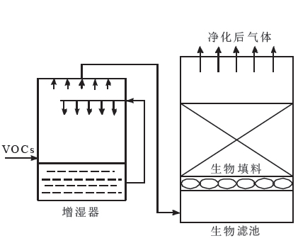 原理是利用微生物將廢氣中所含的有機物分解為CO2 和水,即以廢氣中的有機物為微生物提供能量和養(yǎng)分。主要為如下幾個過程: